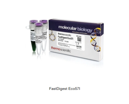 Thermo Scientific FastDigest Eco57I 属于快速限制性内切酶的高端系列,该系列在通用型 FastDigest 和 FastDigest 绿色反应缓冲液中均具有 100% 活性。
