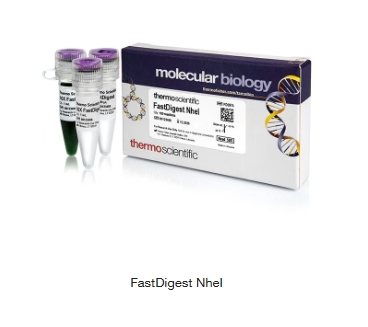 Thermo Scientific FastDigest NheI 限制性内切酶可识别 G^CTAGC 位点,使用通用型 FastDigest 缓冲液于 37°C 下在 5–15 分钟内的切割效果最佳。同裂酶:AsuNHI、BmtI。