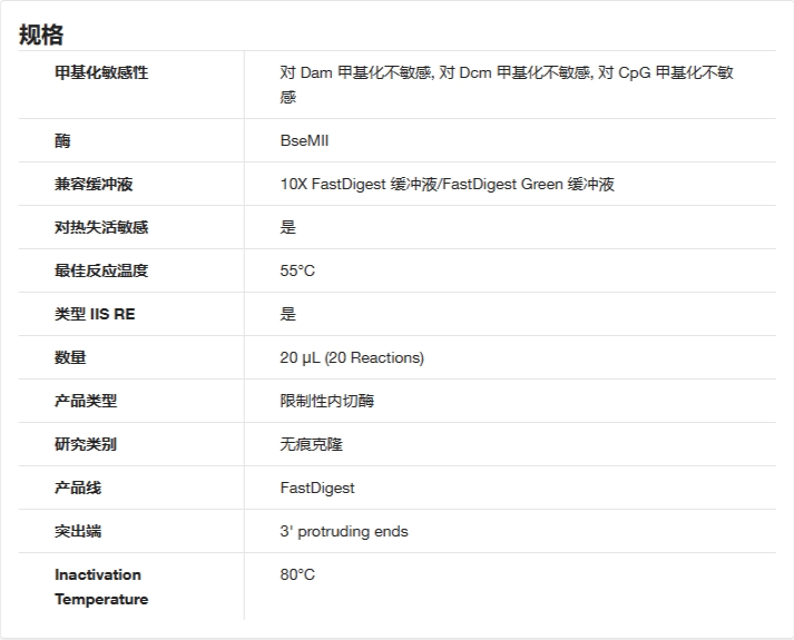 注:FastDigest BseMII 需要 SAM 来发挥其活性。